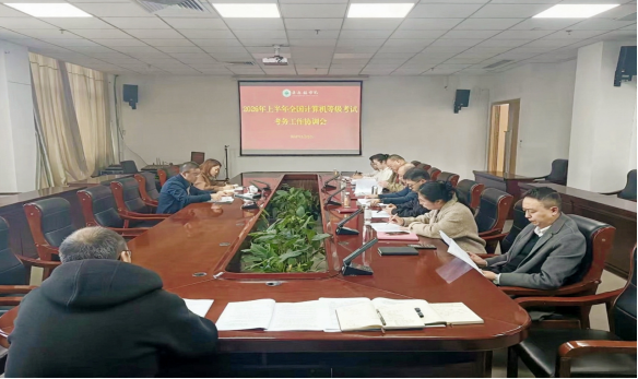 3月25日下午,学校行政楼318会议室召开了2026年上半年全国计算机等级考试考务工作协调会,会议由教务处长李香泉主持,教务处、宣传部、学生工作处、后勤保障服务处、保卫处、网络安全与信息技术中心、信息工程学院等相关负责同志参加了会议。